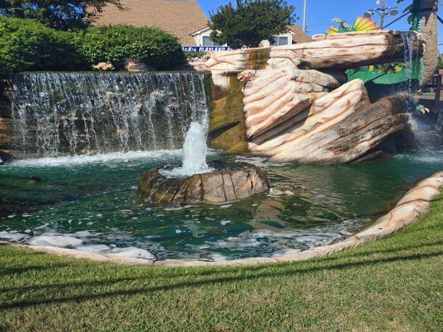 Fun golf course for kids! Recently renovated to Christmas themed golf. My kids (11, 8, 4) all had a blast! The course was well maintained with some easy and some challenging holes. The christmas spirit could be felt throughout the course. They had a fun Christmas in July event going as well and the kids got free icecream after golfing and my youngest even found the hidden Santa and won ropes course passes! They had fake snow that went off and christmas music throughout! We will definitely come back on our next visit to the beach!
